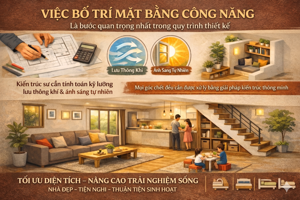 Việc bố trí mặt bằng công năng là bước quan trọng nhất trong quy trình thiết kế. Kiến trúc sư cần tính toán kỹ lưỡng lưu thông khí và ánh sáng tự nhiên. Mọi góc chết trong nhà đều phải được xử lý bằng các giải pháp kiến trúc thông minh. Điều này giúp tối ưu hóa diện tích sử dụng thực tế cho mọi thành viên. Một dự án thiết kế xây dựng nhà đẹp luôn ưu tiên sự thuận tiện trong sinh hoạt hàng ngày.