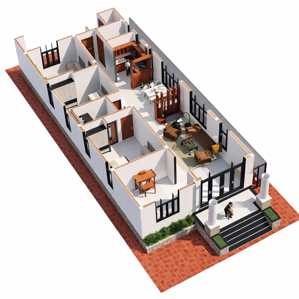- Mặt tiền hẹp, thường từ 3–5m