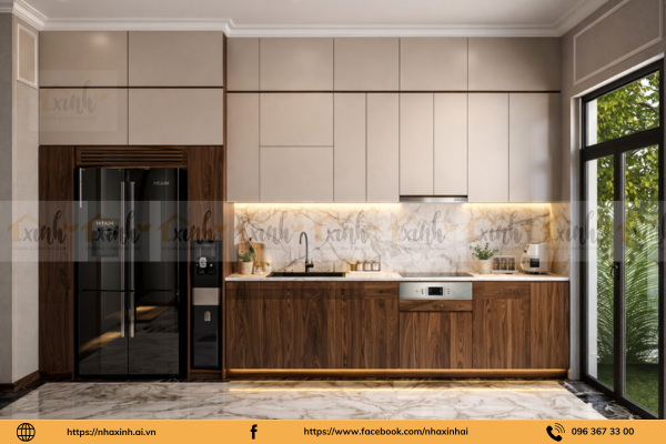 Về thẩm mỹ, tủ bếp chữ I thường được thiết kế theo phong cách tối giản với bề mặt phẳng và màu sắc trung tính. Điều này giúp căn bếp trông gọn gàng, hiện đại và dễ dàng vệ sinh.