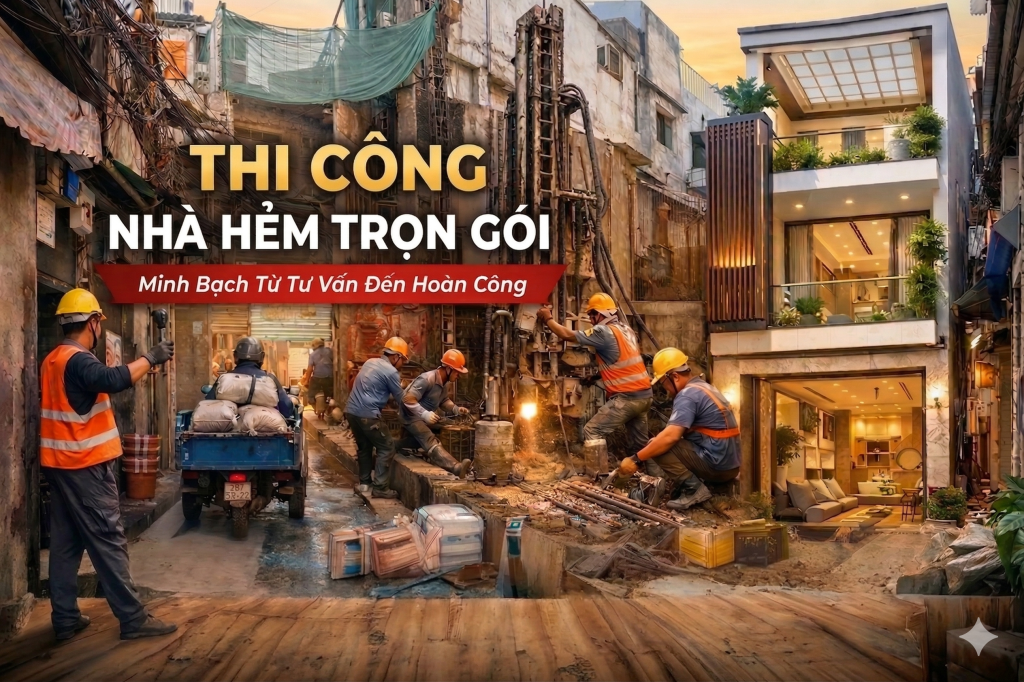 Thi công nhà trong các con hẻm nhỏ tại các đô thị đặc thù như TP.HCM hay Hà Nội lại là một cuộc chiến thực sự về cả trí tuệ, kỹ thuật và sự kiên nhẫn. Những con hẻm chỉ vừa một chiếc xe máy đi qua, những ngôi nhà san sát chung tường, chung vách… tất cả tạo nên một tổ hợp thách thức mà nếu không có kinh nghiệm, chủ đầu tư rất dễ rơi vào tình trạng “khủng hoảng” chi phí và thời gian.