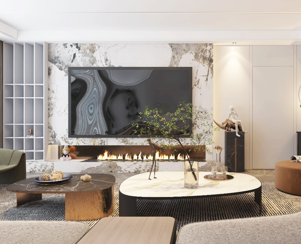 Vách tivi phòng khách hiện đại – xu hướng thiết kế nội thất 2025